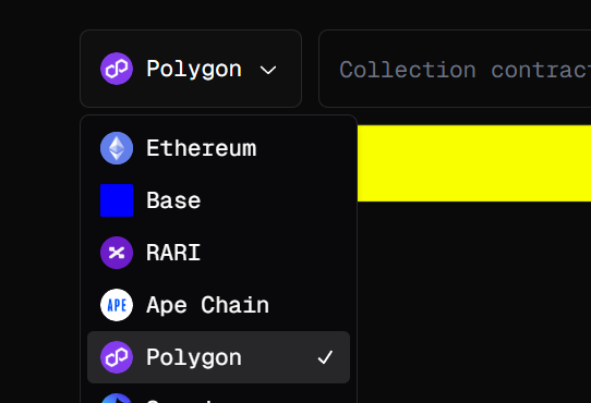 First thing you will need to do is to choose the blockchain your collection is located on through the drop down menu.