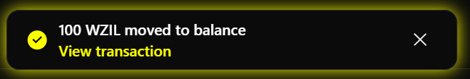 Once the transaction is confirmed, the pop-up will close and you’ll see a small success message saying the amount has been moved to your balance.