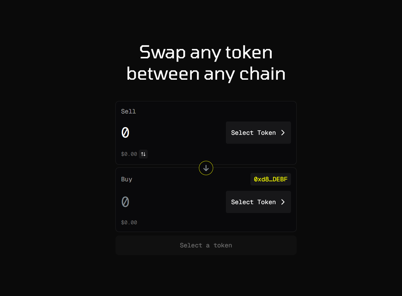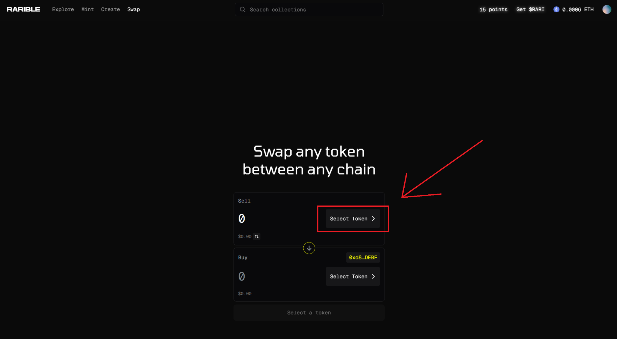 Once your wallet is connected, click the Select Token button to choose the token you wish to swap, bridge, or transfer.