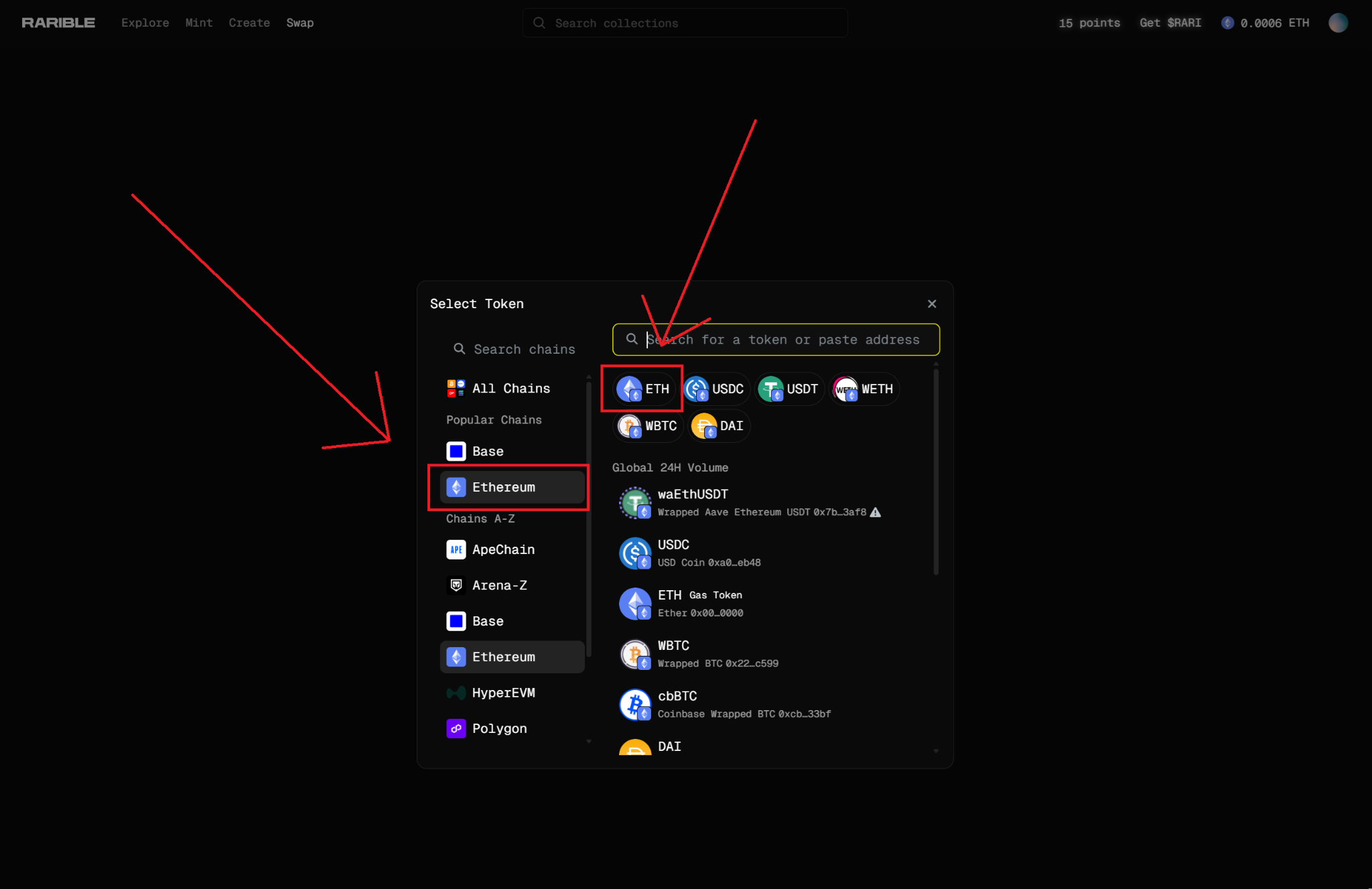 Step 1: Access Rarible Swap and Connect Your Wallet
