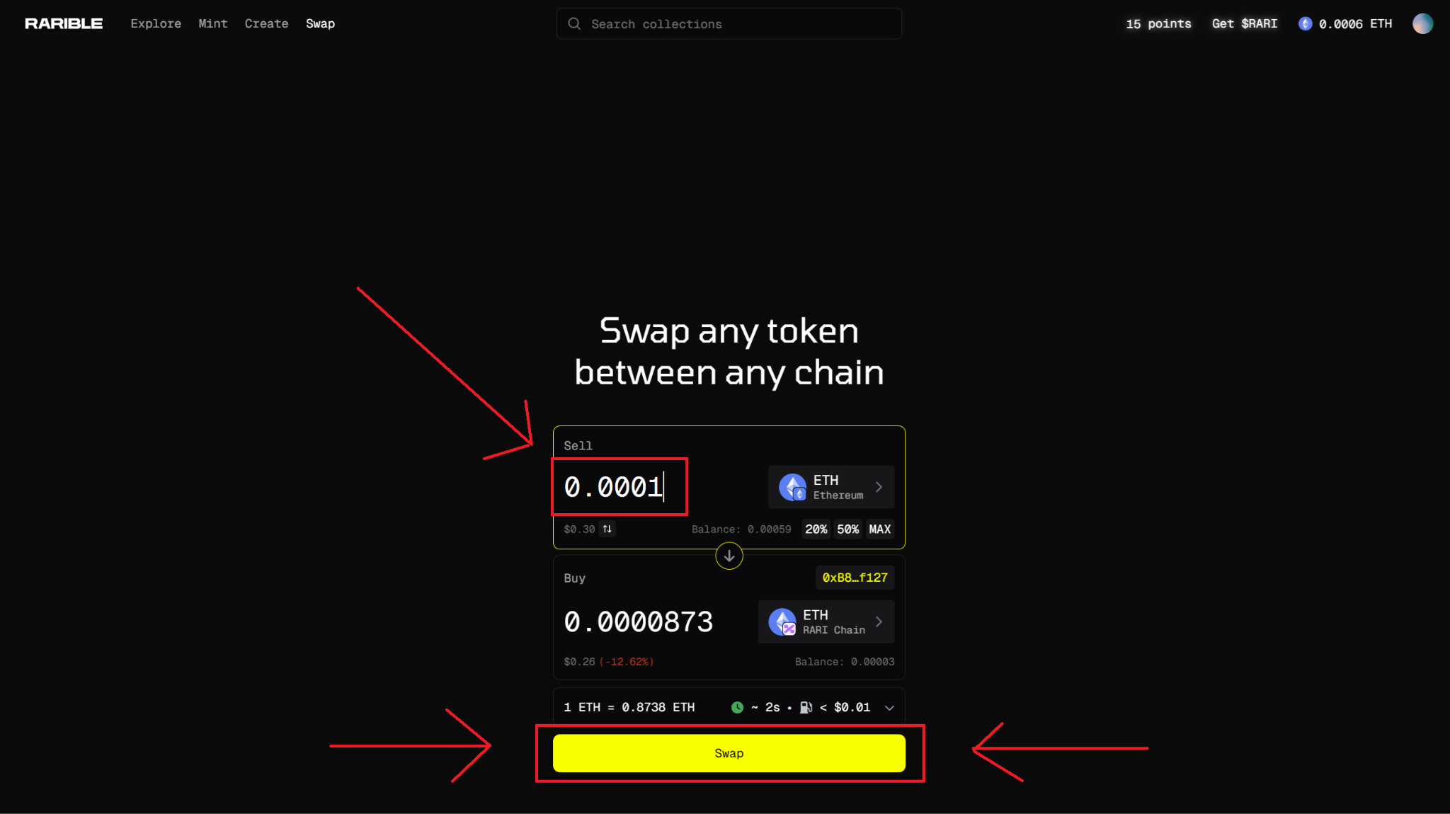 The Rarible Swap is a feature on the Rarible NFT marketplace that allows users to instantly exchange, bridge and transfer tokens across different blockchains.